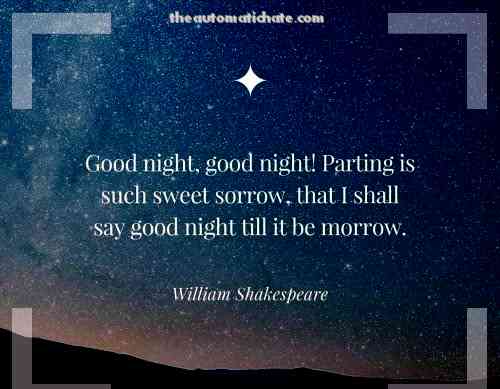 Доброї ночі, доброї ночі! Розлука - це таке солодке горе, що я скажу доброї ночі, поки не буде завтра. Вільям Шекспір.